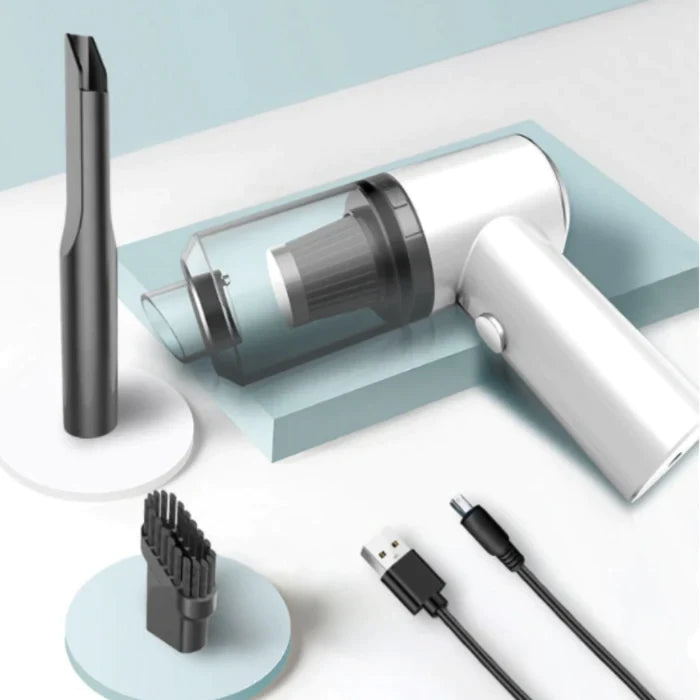 La Aspiradora Portátil con Soplador combina dos funciones en un solo dispositivo: aspira la suciedad y también sopla el polvo, hojas o migas de lugares difíciles de alcanzar. Su diseño compacto y potente la hace ideal para el hogar, el auto, la oficina y más.
